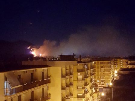 Salerno. Forte preoccupazione nella zona orientale del capoluogo per il pauroso incendio che è divampato nella serata sulle colline che costeggiano la tangenziale, tra Sant'Eustachio e zona San Leonardo, ben visibile da più parti (vedi foto). Il vasto rogo ha sviluppato fiamme alte e denso fumo nero, che hanno causato numerosi problemi di viabilità e forte preoccupazione per i residenti della zona, vicinissimi al fuoco con le loro abitazioni, e per il prospiciente Ospedale "San Giovanni di Dio e Ruggi D'Aragona". L'aria risultava infatti pesante e irrespirabile. Sul posto sono intervenuti i Vigili del Fuoco. Allertate anche le ambulanze del 118 per soccorrere alcuni residenti che hanno accusato problemi respiratori dovuti a polveri e ceneri presenti nell'aria. L'incendio è stato domato dopo alcune ore e spento attorno all'una di notte. Ancora sconosciuta la natura del rogo, non si esclude l'origine dolosa. AGGIORNAMENTI IN CORSO