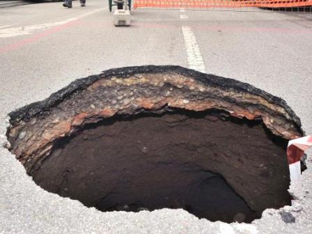 Castel San Giorgio. Un enorme buco nell'asfalto, profondo cinque metri e largo due si è aperto in Piazza Cangemi lo scorso lunedì, determinando disa...