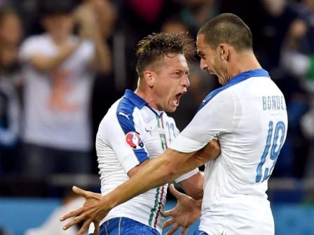 Lione (Francia). E' festa Azzurra a Lione. L'Italia batte 2-0 il Belgio con i gol di Giaccherini e Pellè e conquista i primi tre punti del suo Europe...