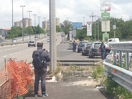 Salerno-Napoli, palo al centro dello svincolo: sit-in di protesta dei cittadini