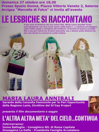 Salerno. Arcigay Salerno "Marcella Di Folco" promuove per domenica 27 e lunedì 28 ottobre due incontri dal titolo "Le lesbiche si raccontano" in cui ...