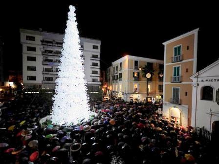 E' stata festa grande a Salerno per l'accensione del mega albero di Natale in piazza Portanova con il Sindaco Vincenzo De Luca e la conduttrice televi...